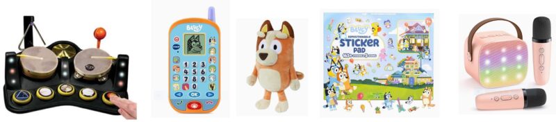 - Bluey: Ring Ring Phone ($22.97), Nine Inch Plush Toy ($14.13), or Repositionable Sticker Pad ($9.96).
