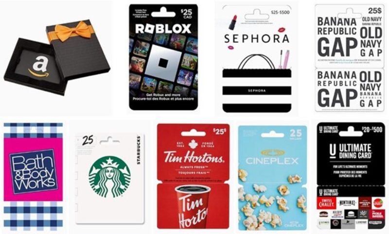 - Teen Gift Cards: Roblox, Sephora, Gap, Cineplex, Bed Bath and Beyond