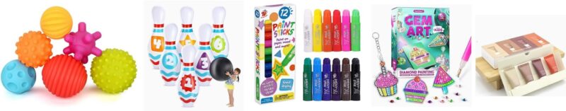 - Educational Toys and Age-Appropriate Gifts: Kits like Gem Art, Paint Your Own Moon, or make up/ beauty kits can be super engaging and enable the imagination to travel. ($20-30).