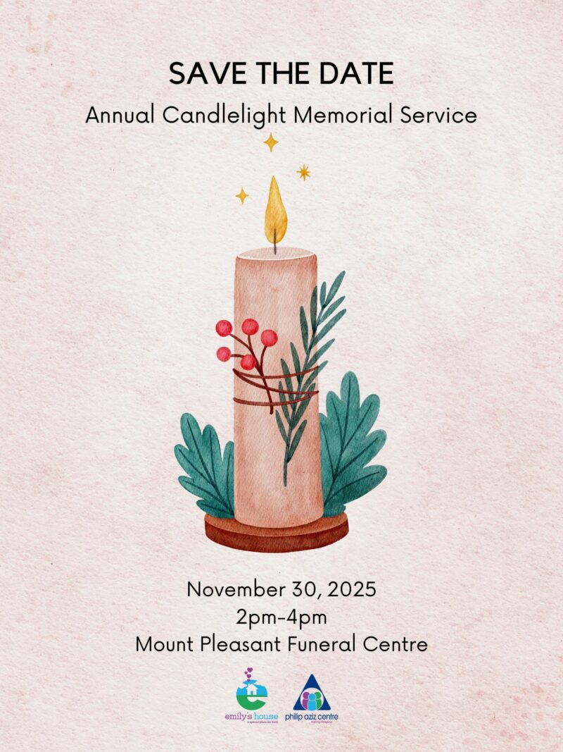Save the Date for the Philip Aziz Centre / Emily’s House Annual Candlelight Memorial Service.