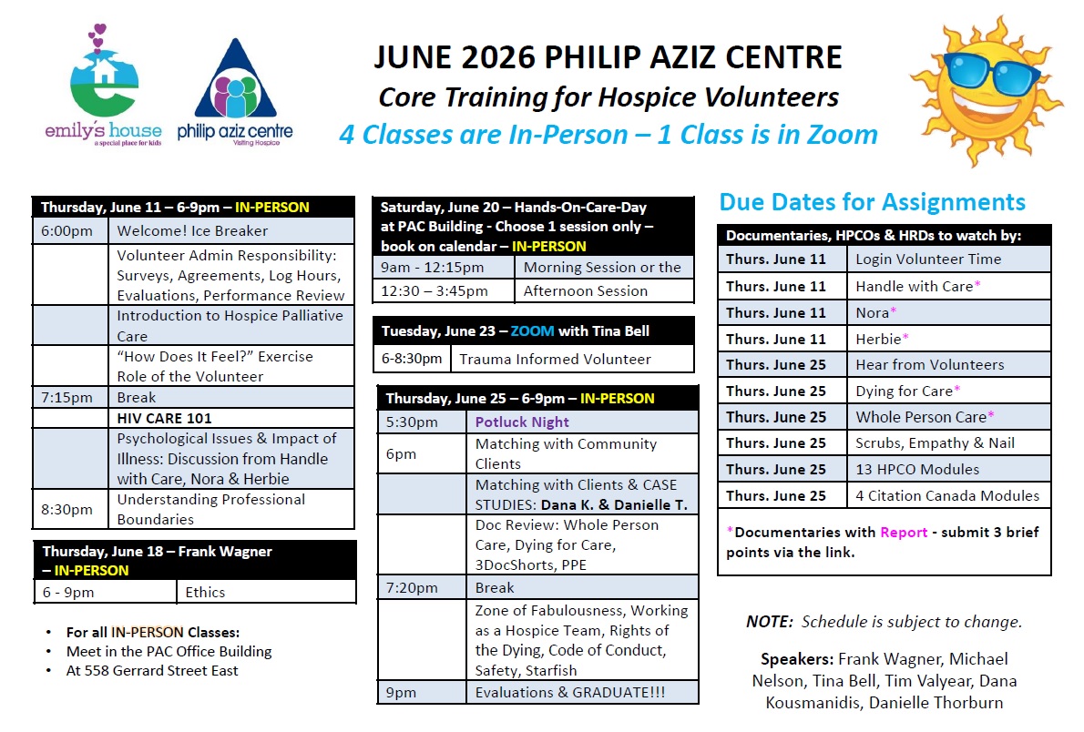 To see the schedule for our Hospice Palliative Care Training Program aka CORE Training: June 2026 is the next training.